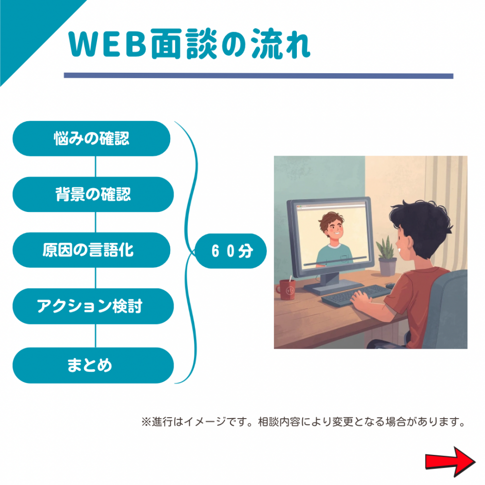 ・オンライン面談はGoogle Meetを使用します。より適切にサポートができるよう顔出しを推奨しておりますが、ご希望に応じてカメラオフでの参加も可能です。